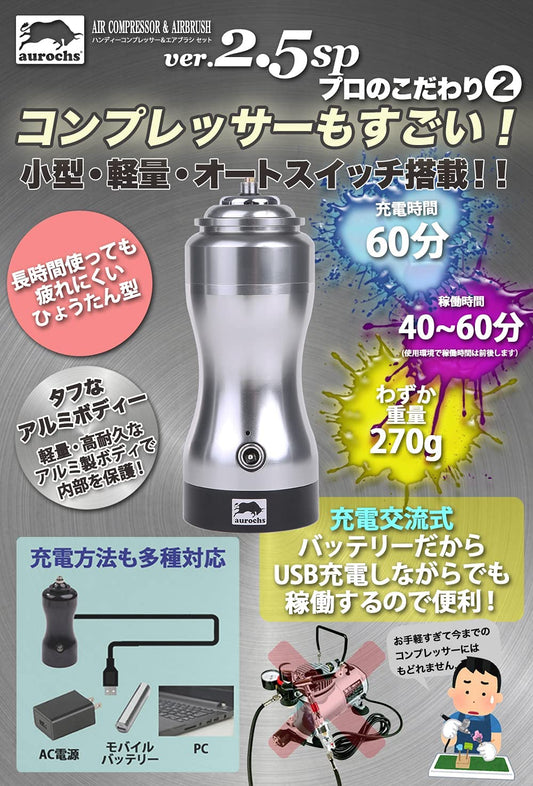 [aurochs] エアブラシ コンプレッサー ver.2.5sp 充電式 自動電源 ダブルアクション