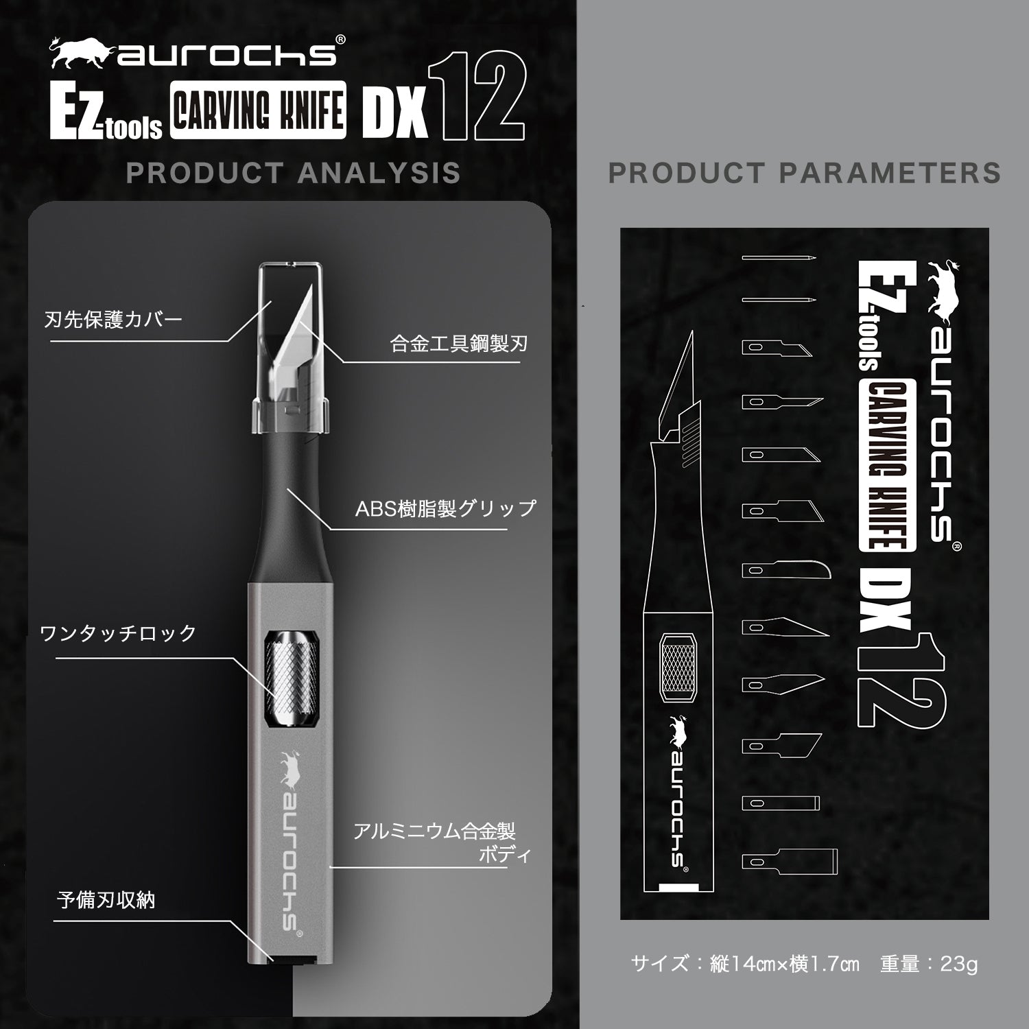 aurochs EZ-tools カービングナイフ DX12 刃先11種12刃枚付